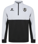 Contrast upper chest and underarm panels. Quarter zip. Side panels. Reverse nylon zips centre front and side pockets. 1x1 ribbed cuff sleeve. Semi-automatic zip pull and slider.